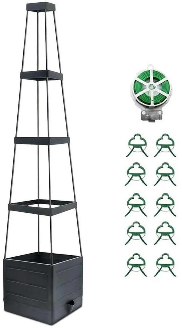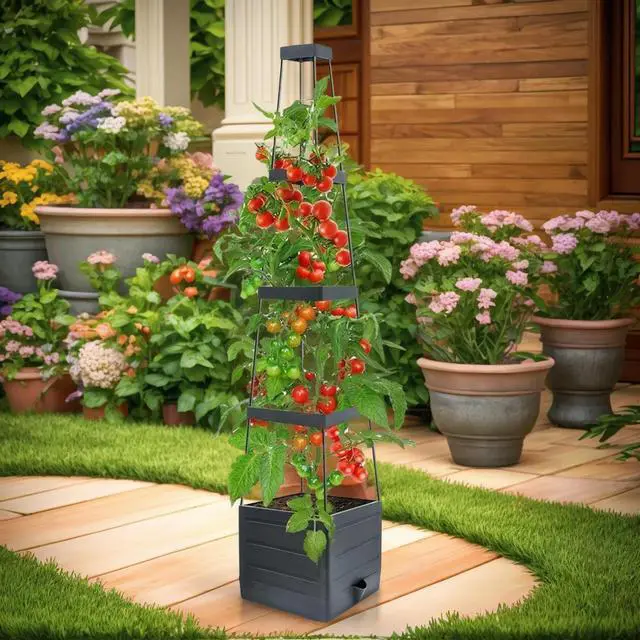 • Raised Garden Bed Planter Box with Trellis Tomato Cage Planter Self-Watering Planter Box for Patio Greenhouse