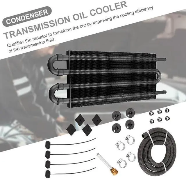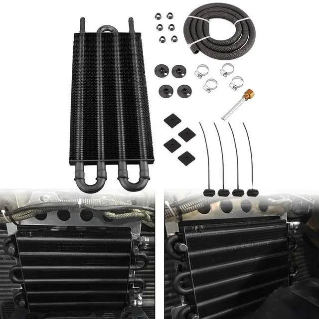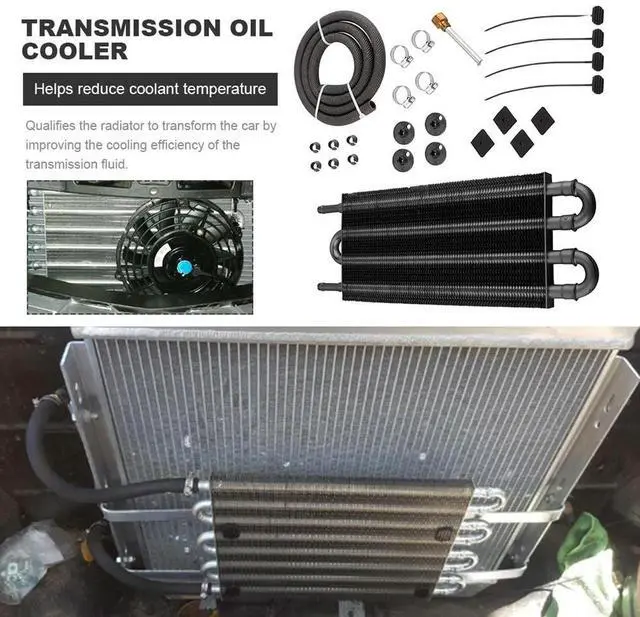 • 4 Row Aluminium Alloy Radiator with Tube and Hose Mounting Kit Oil Radiator Transmission Engine Cooler