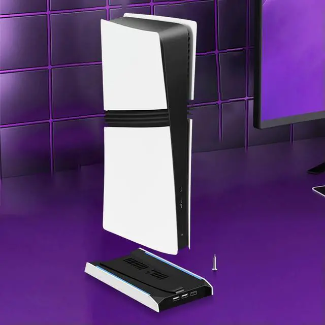 • For PS 5 Slim/PS 5 Pro RGB Vertical Cooling Stand 8 Light Mode Game Console Bracket with 3 USB 2.0 Ports & 3-Speed Fan