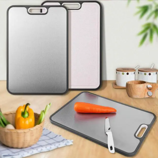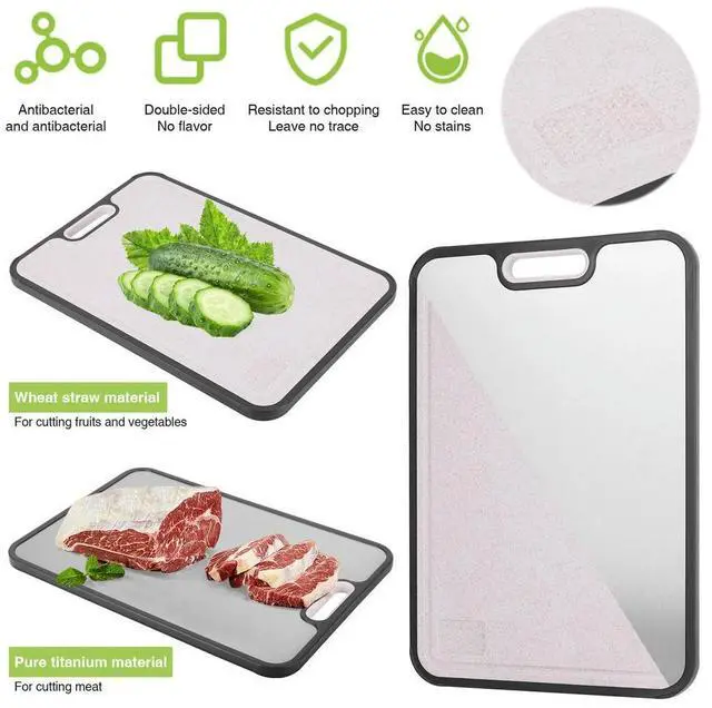 • Wheat Straw Chopping Board Wear Resist Double Sided Steel Cutting Board Reusable Large Meat Chopping Board for Safe Food Prep