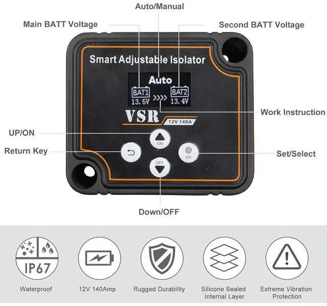 • Dual Isolator 12V 140A Voltage Sensitive Relay VSR Split Charge Relay Voltage Setting VSR For Camper Car RV Boat