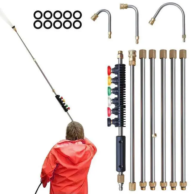 • 10Pcs Pressure Washer Lance Extension Water Gun Nozzle Extension Rods Set Spray Gun Wand Lance with 6 Adjustable Nozzles 4000PSI