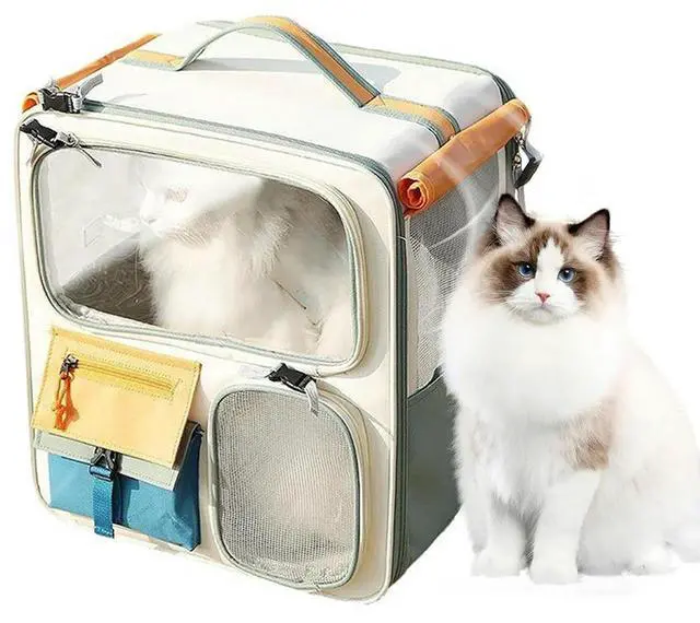 • Oxford Cloth Pet Backpack Large Capacity Portable Cat Backpack Breathable Dog & Cat Travel Carrier Bag for Outing and Car Rides