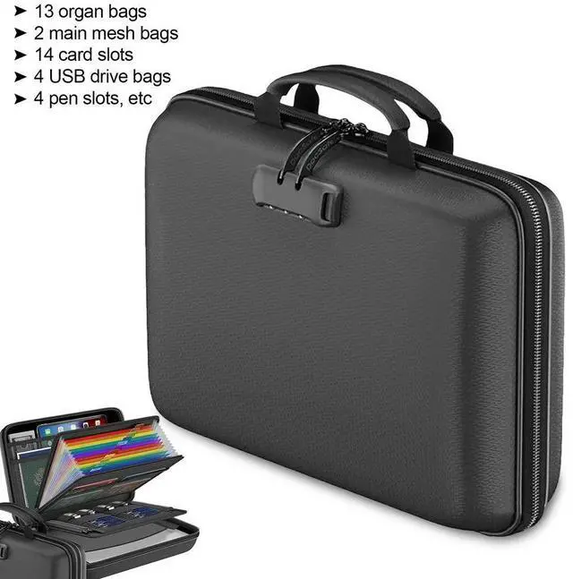 • 13 Accordion Pocket Fireproof Document Box with Lock Waterproof Briefcase Large Capacity for Offices Business Travel Meeting