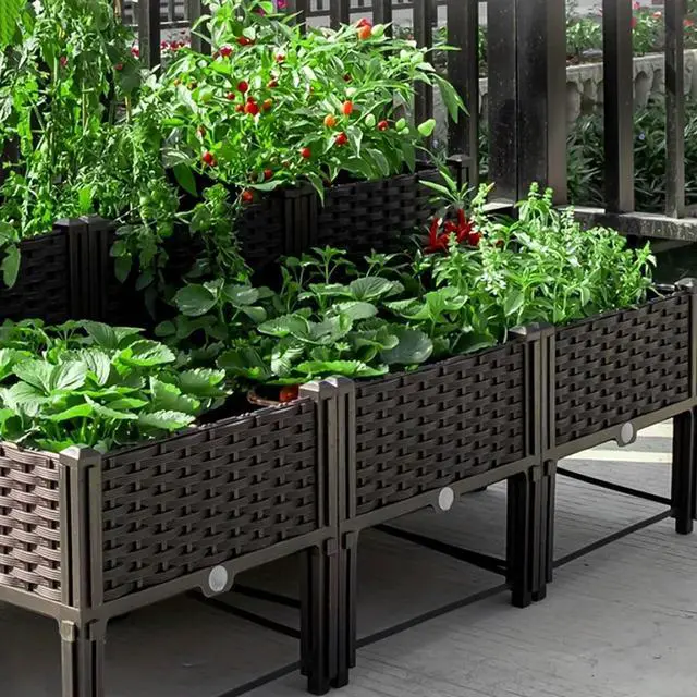 • Plastic Planting Container with Drainage Holes Raised Bed Elevated Propagation Box for Patio Flower Fruit Vegetable Growing