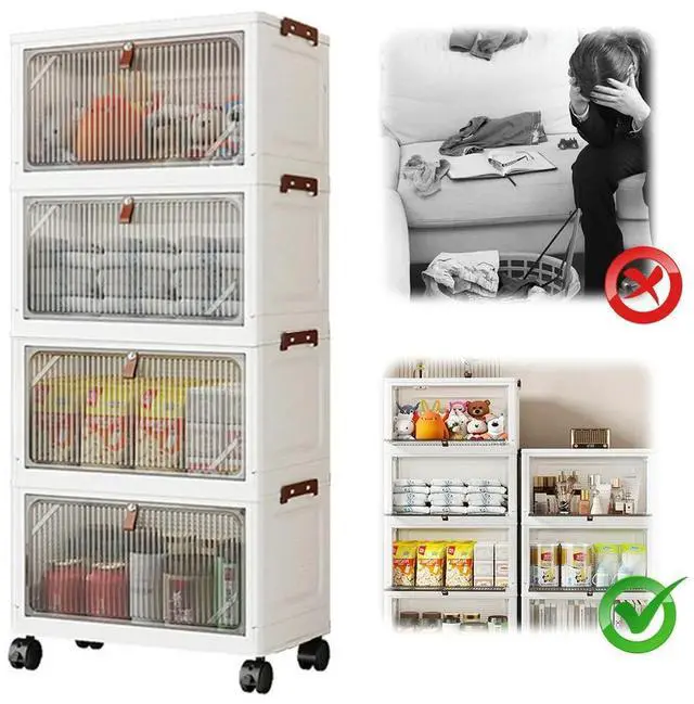 4 Layers Stackable Bins Large Capacity Sundries Cabinet Toy Finishing Cabinet Clothing Box for Organizing Snacks