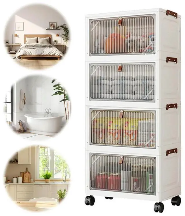 • 4 Layers Stackable Bins Large Capacity Sundries Cabinet Toy Finishing Cabinet Clothing Box for Organizing Snacks