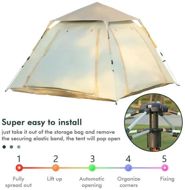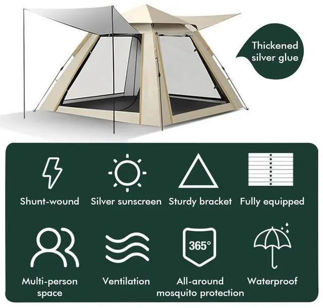 • Large Size Outdoor 3-4P One-Touch Camping Tent Quick Automatic Opening Beach Fishing Tent Family Travel Picnic Park Anti-UV Tent