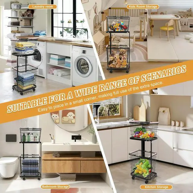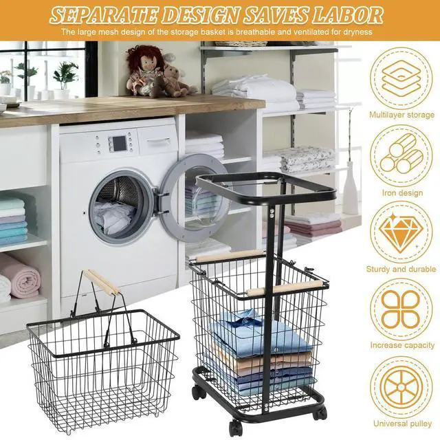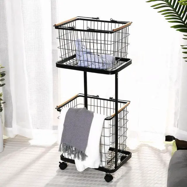 2 Tier Wire Laundry Hamper Cart with Wheels Laundry Hamper Trolley Laundry Clothes Basket for Laundry Room Bathroom Bedroom