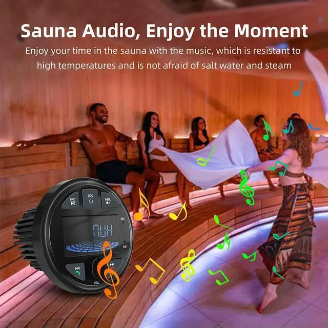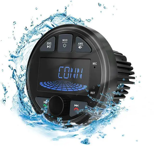 Round MP3 Player with LCD Screen Boat AM FM Receiver 4x50W DC 12V IPX6 Waterproof Media Audio Player for Yacht ATV UTV RV