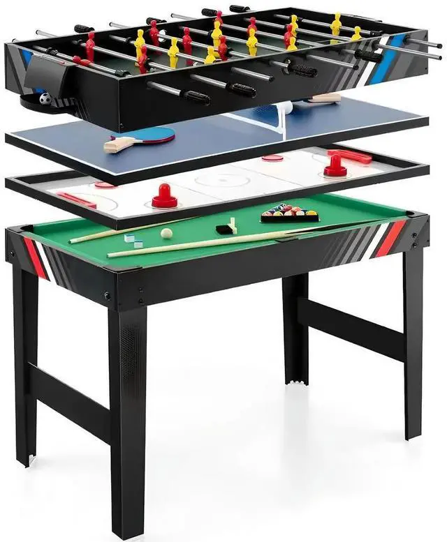 • 4-In-1 Multi Game Table with Football Billiards Ice Hockey Table Tennis Different Convert Tables Game Multifunction Gaming Table