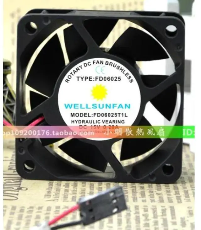 • WELL SUNFAN FD6025 15V 0.20A 6CM 2-wire Silent Cooling Fan 60*60*25mm