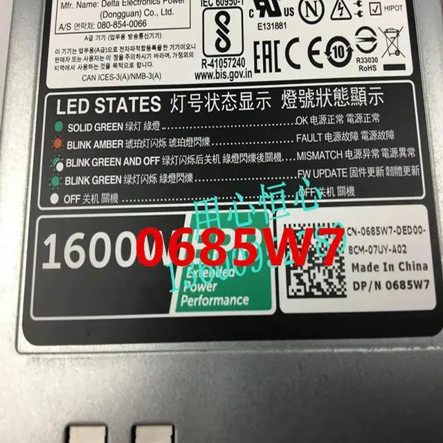 • Power Supply R530 T630 R740 T630 1600W For D1600E-S0 685W7 0685W7 95HR5 095HR5
