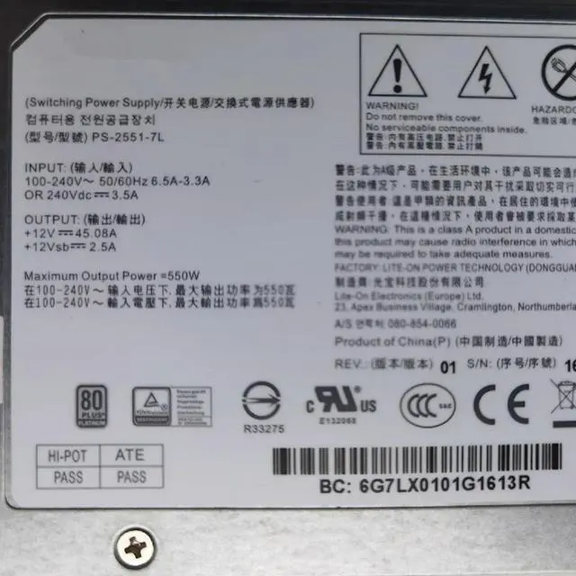 Power Supply For LITEON K800G3-10G RD452X 550W PS-2551-7L