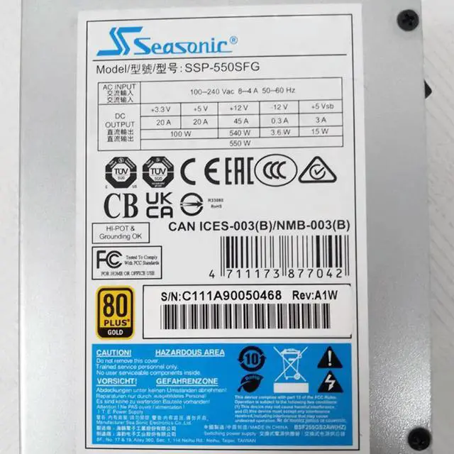 • Power Supply For Seasonic 80plus Gold 550W For SSP-550SFG