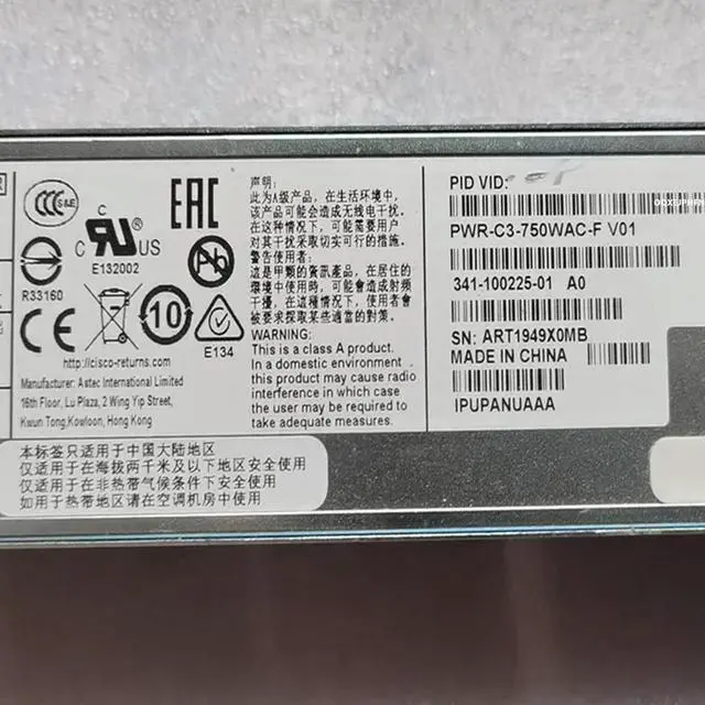 • Almost Power Supply For WS-C3850-48XS-S 750W For PWR-C3-750WAC-F 341-100225-01 7001591-J700