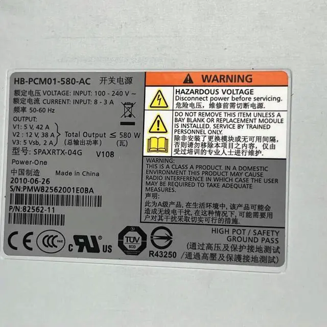 • HB-PCM01-580-AC 82562-10 For Xyratex Cabinet 580W Power Supply SPAXRTX-04G