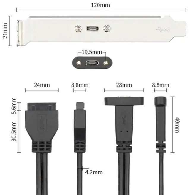 USB3.1 Type-C Female to USB 3.0 Motherboard 20Pin Panel Mount Cable With Rear PCI Back Panel Expansion Bracket for PC Computer