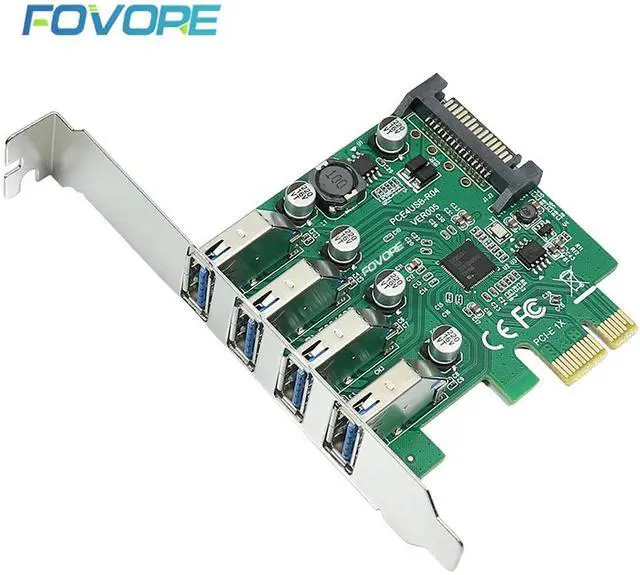 • 4 Ports USB 3.0 PCIe Card USB 3 PCI Express Adapter USB3 to PCI-e Expansion Card 5Gbps With SATA Power Supply For Desktop