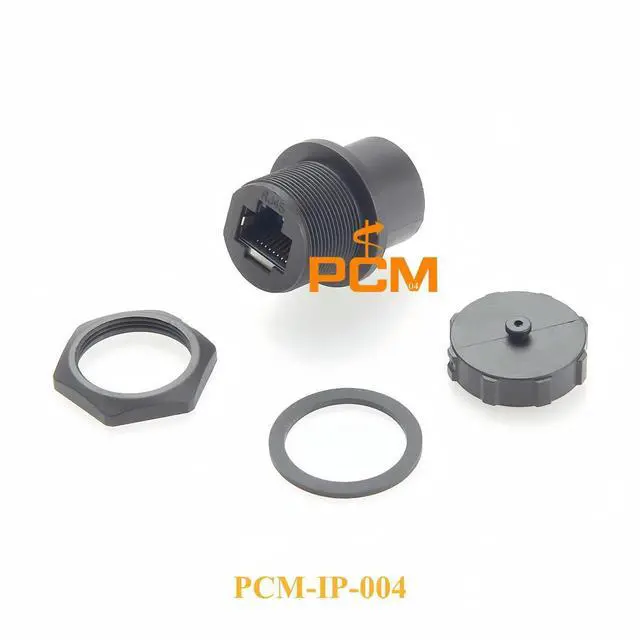 • IP67 Waterproof RJ45 Female Coupler Shielded Panel Mount Feedthrough Connector with Dust Cap RJ45 Industrial Ethernet extender