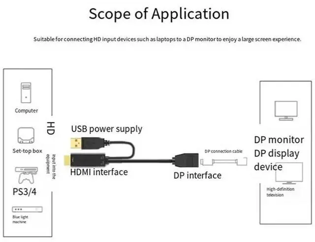 • 4K Compatible To Displayport DP Converter Cable- Male HDTV Port To Female DP Adapter Conversion For Laptop Monitor Mal