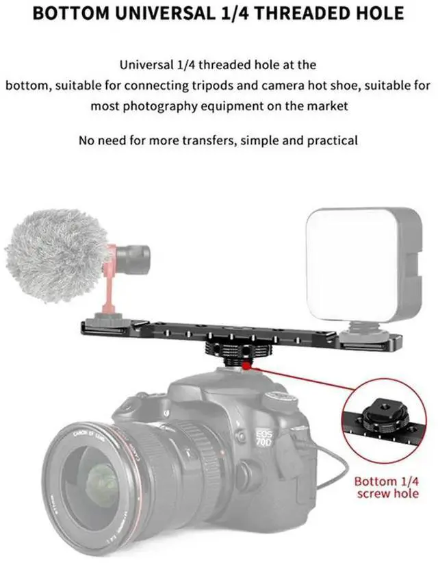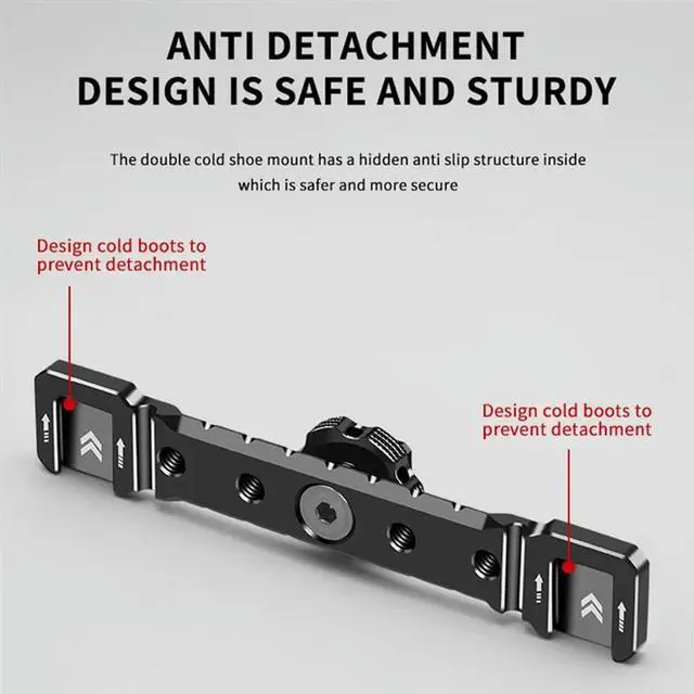 • Cold Shoe Mount Bracket Dual Hot Shoe Extension Bar Plate Adapter For Camera Cage Mic LED Video Light Stand
