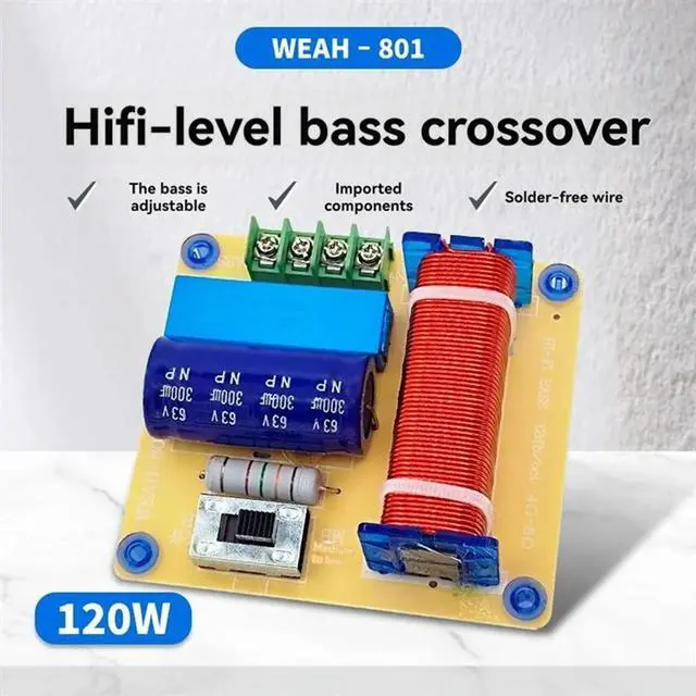• 1-Way Speaker Audio Frequency Divider 65-1000Hz 120W Hifi Crossover Filter Module Home Theater Audio Modification