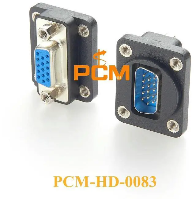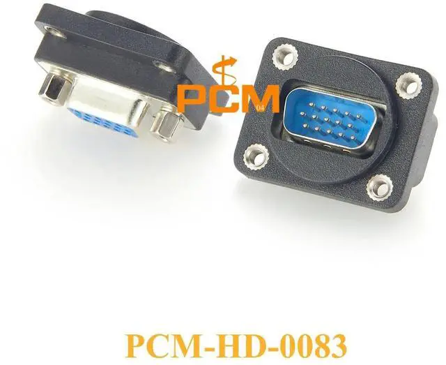 • VGA adapter D type square flange panel mount, HD15 VGA male to female for video signal transmission, NAD B15MF & AD-HD15MF