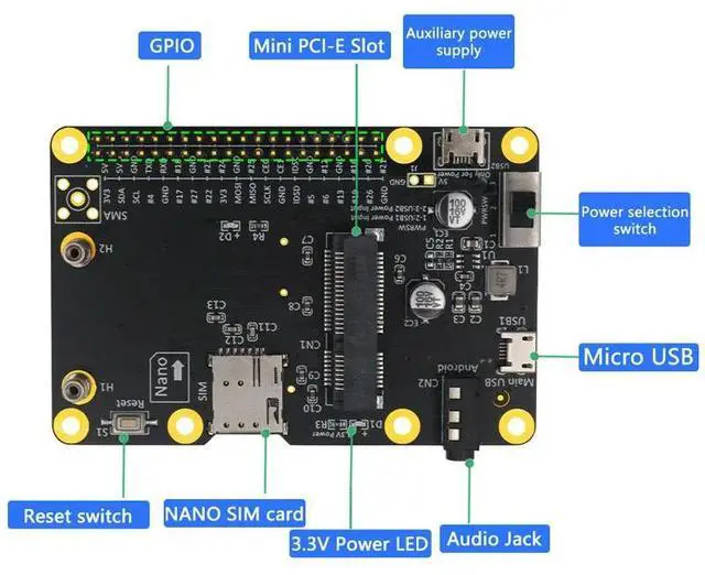 • Mini PCIe to USB Adapter for Raspberry Pi 5 4 3 B+, 3G 4G LTE WWAN Base HAT, Shield with SIM Slot for Tinker