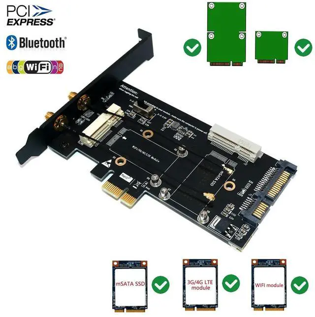 • PCI-E Adapter Mini PCI-E to PCI-E Network Card mSATA SSD to SATA 2.5 Adapter with SIM Card Slot for 3G/4G/LTE Wi Fi Adapter