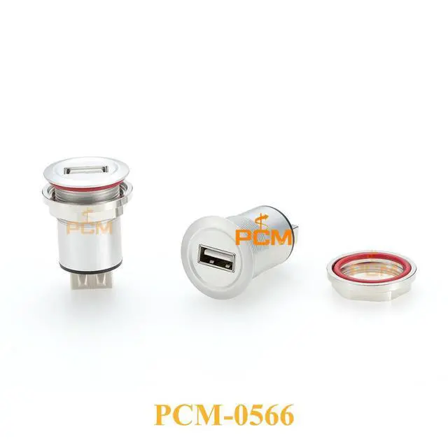 • USB2.0 Round Panel Mount passthrough adapter Aluminum Alloy Housing with Rubber Ring USB-A female to female for flush mount