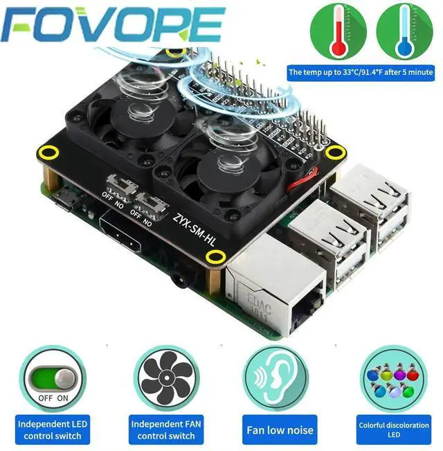 Raspberry Pi 4 Model B LED Dual Cooling Fan Automatic Discoloration GPIO Expansion Board + Switch for Raspberry Pi 4B/3B+/3B/3A+