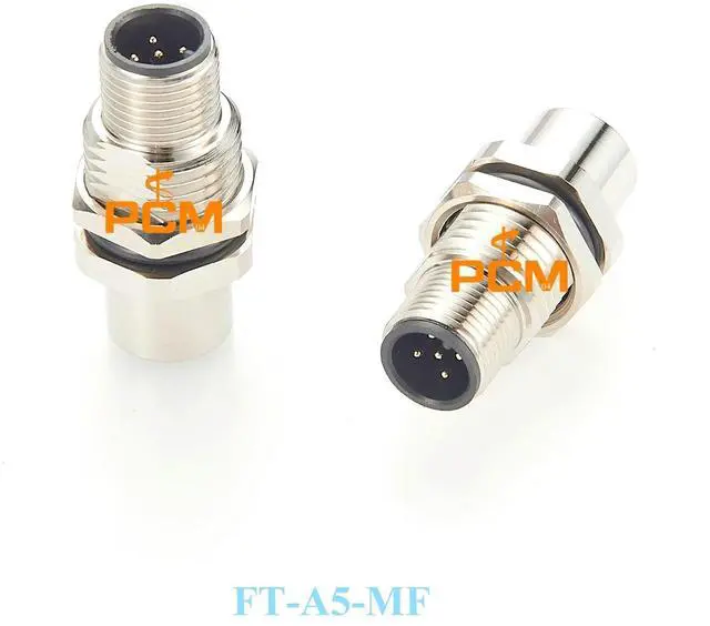 • M12 A Code 5Pin Male to Female Converter IP67 Shielded Bulkhead Feedthrough Panel Mount Connector Receptacle 60V 4A for NMEA2000