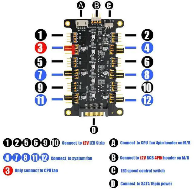 • Fan HUB For PC Case Chassis 2 in 1 6-ways Fan Splitter HUB 3Pin 5V ARGB 4 Pin 12V ARGB 12V PWM Cooler Adapter LED Fan Controller