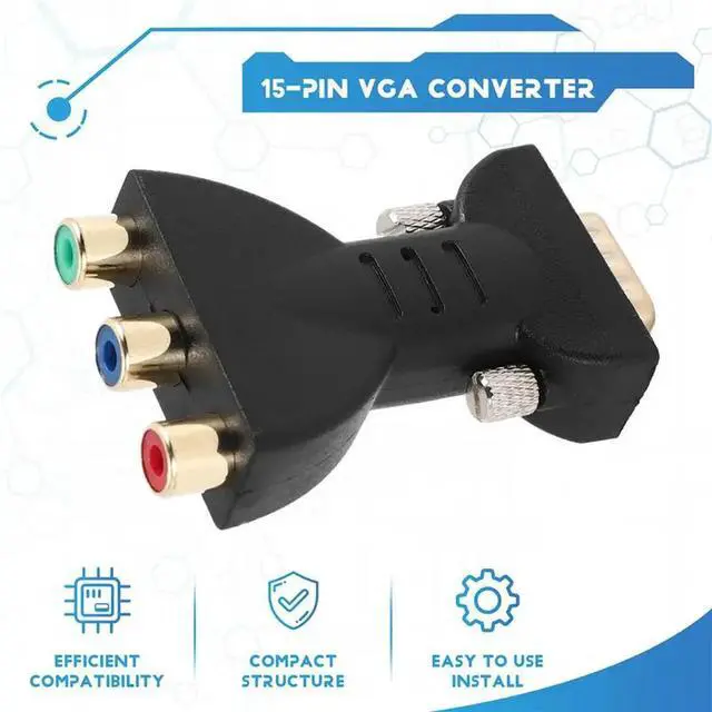 • 3 RCA RGB Female To HD 15-Pin VGA Style Component Video Jack Adapter Conventer