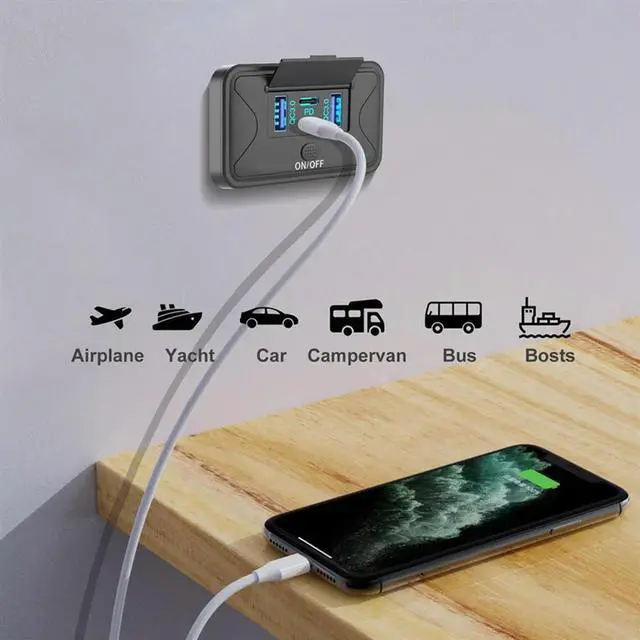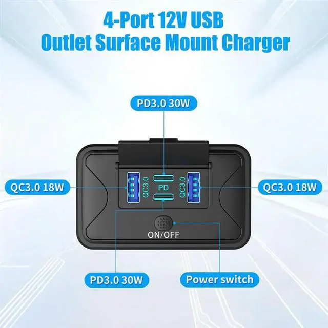 • 78W 4 Port 12V USB Outlet Wall Mount, Dual 36W PD & Dual 18W QC3.0 Mount Charger Socket Panel With Button Switch