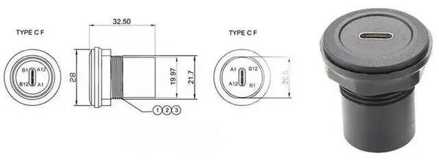 • PD100W Extender Panel Panel Flush Mount Jack Socket Female To Female Charging Converter USB 3.1 Type-C Coupler 10Gbps