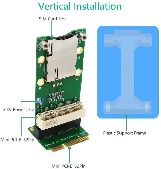 • Mini PCI-E Adapter with SIM Card Slot(Vertical installation) for 3G/4G ,WWAN LTE ,GPS card
