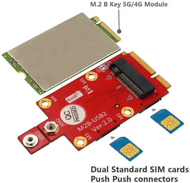 M. 2 Key B to Mini PCI-e Adapter with 2 NANO SIM Card Slots NGFF M2 to Mini PCI Express PCIe for 3G 4G 5G Module