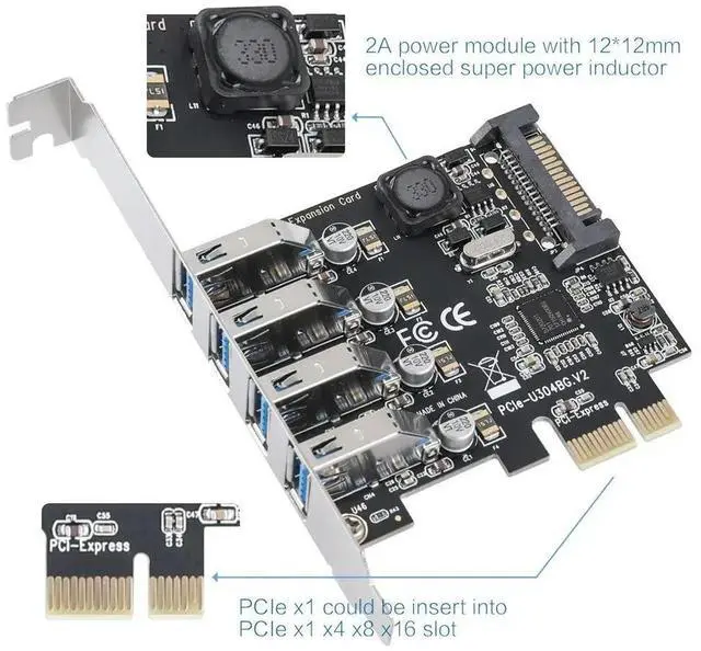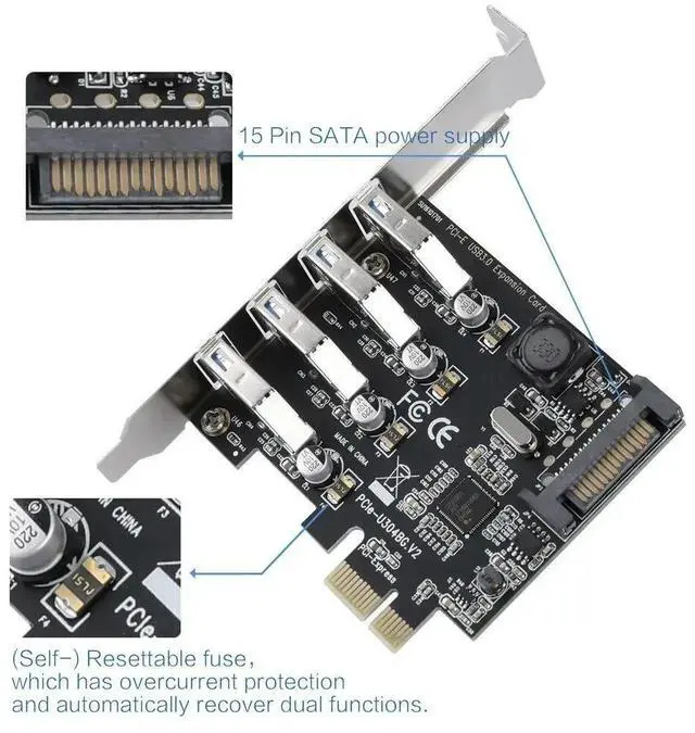 • PCIe USB adapter 4 Ports USB3.0 Expansion Card PCI-E PCI Express USB 3.0 Adapter Converter for PCIE x1 x4 x8 x16