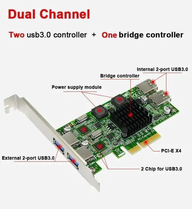 • USB 3.0 PCIE Card 4 Port USB3 5Gbps Dual Channel PCI-E to USB 3 Expansion Card Adapter For Desktop Computer Compontens