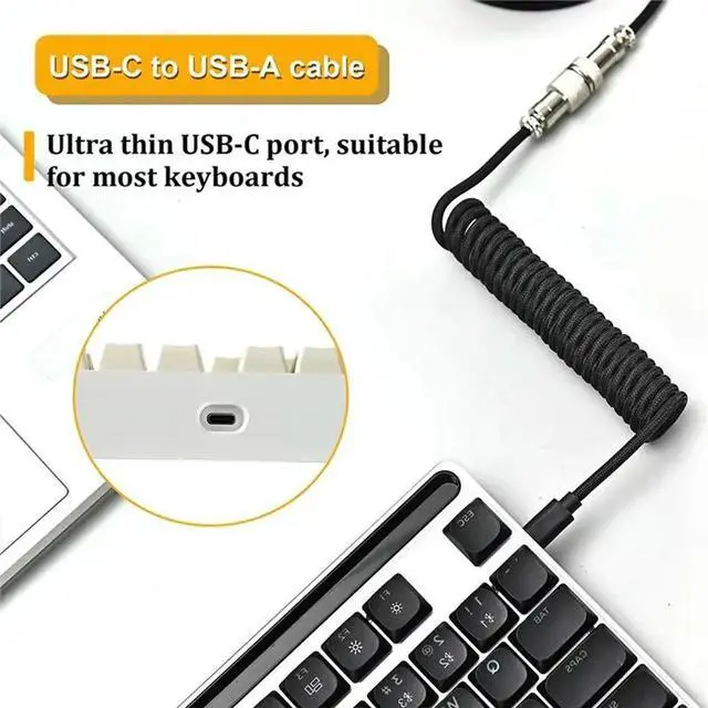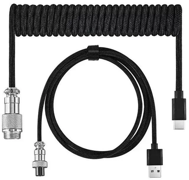 • Usb Keyboard Cable Black Coiled Keyboard Usb Type C Cable DIY Aviation Plug Cable Connector Gaming Usb Keyboard Cable