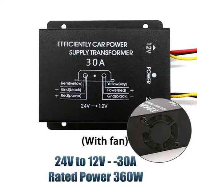 • Efficient DC-DC 24V To 12V Power Supply Voltage Converter 30A With Fan Down Step Adapter Car Power Supply Transformer
