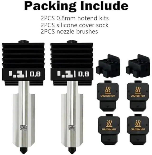 • Extra 2PK Silicone Cover+ 2PK Nozzle Brush Included In 2PK 0.8MM Hotend Kit With Upgrade Hardened Steel Nozzle For La