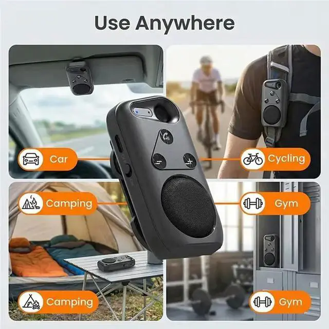• Bluetooth V5.4 Speakerphone Handsfree Sun Visor Speaker Car Kit Sport Audio Music Loudspeaker