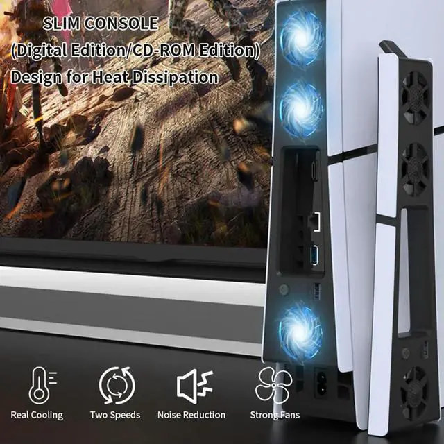 • Gaming Cooler Fan Efficient Cooling System With LED Light Noise Reduction For PS5 Slim Cooling Fan And Digital Console