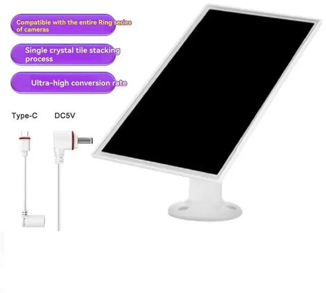 • Solar Panel For Ring Camera Solar Charger Outdoor Cam , 6W 5V Solar Panel