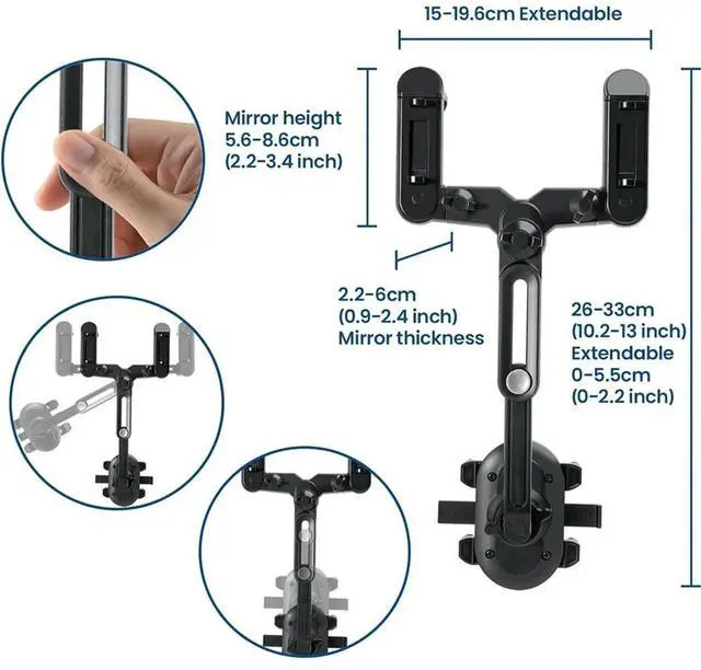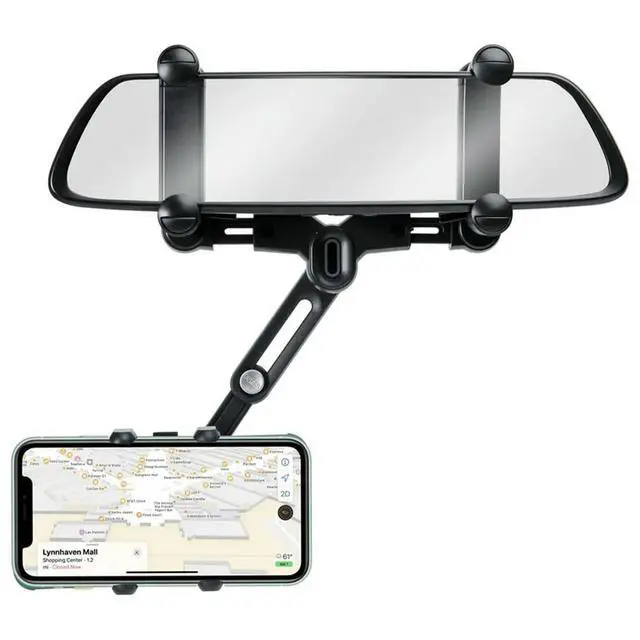 • Rear View Mirror Phone Holder for Car, 360° Rotatable and Retractable Car Phone Holder, 4 Claws More Stable Phone