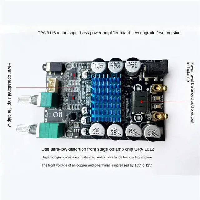 • TPA3116 Subwoofer Amplifier Board Audio Board Mono Power Amp Sound Amplifier 100W Amplifier Board DC9-24V, Durable