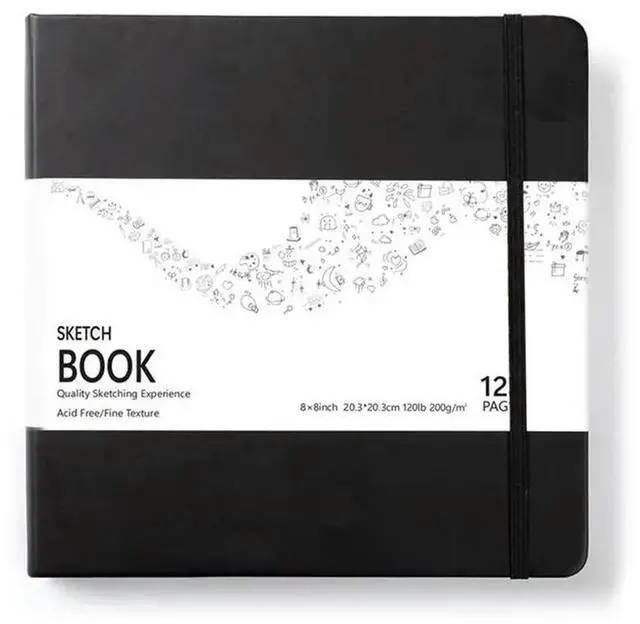 • Landscape Hardcover Sketchbook-White Paper, 120 Pages, Black Cover, 8X8 Inch Size
